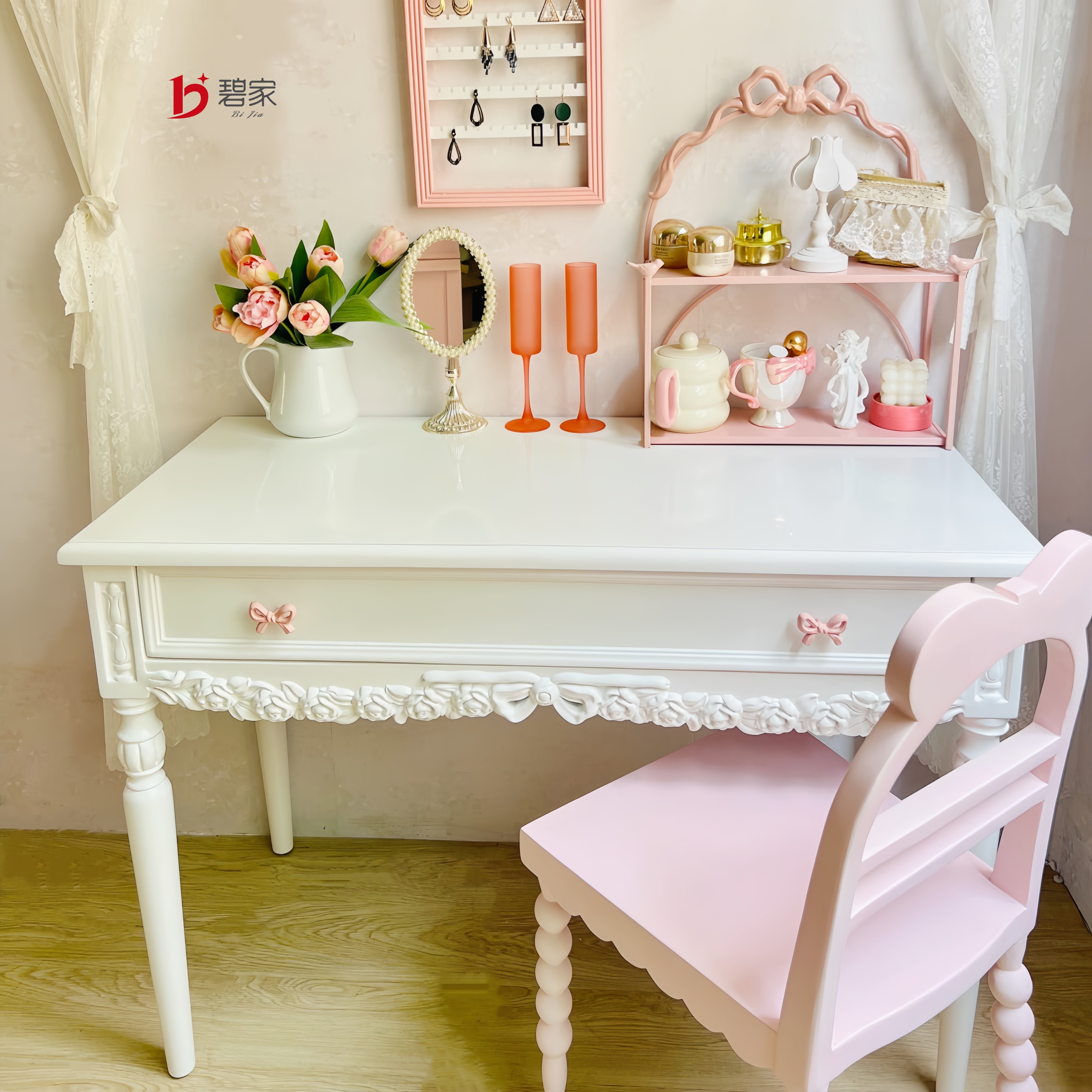 #碧家法式雕花实木梳妆桌 #少女心爆棚 #实用多功能 #券后价1880