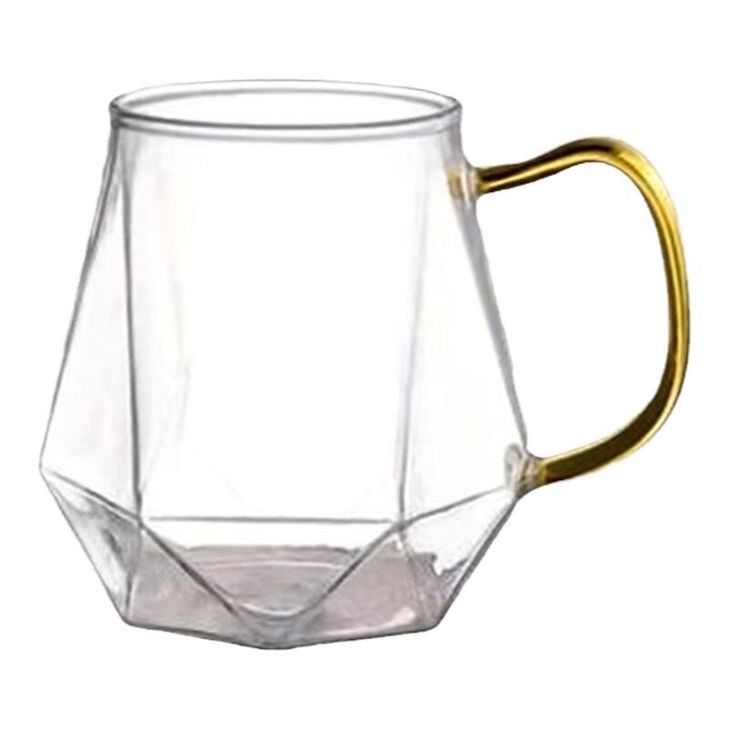 📚 钻石玻璃杯高硼硅玻璃水杯耐热家用水杯透明带把防烫喝水杯子男生