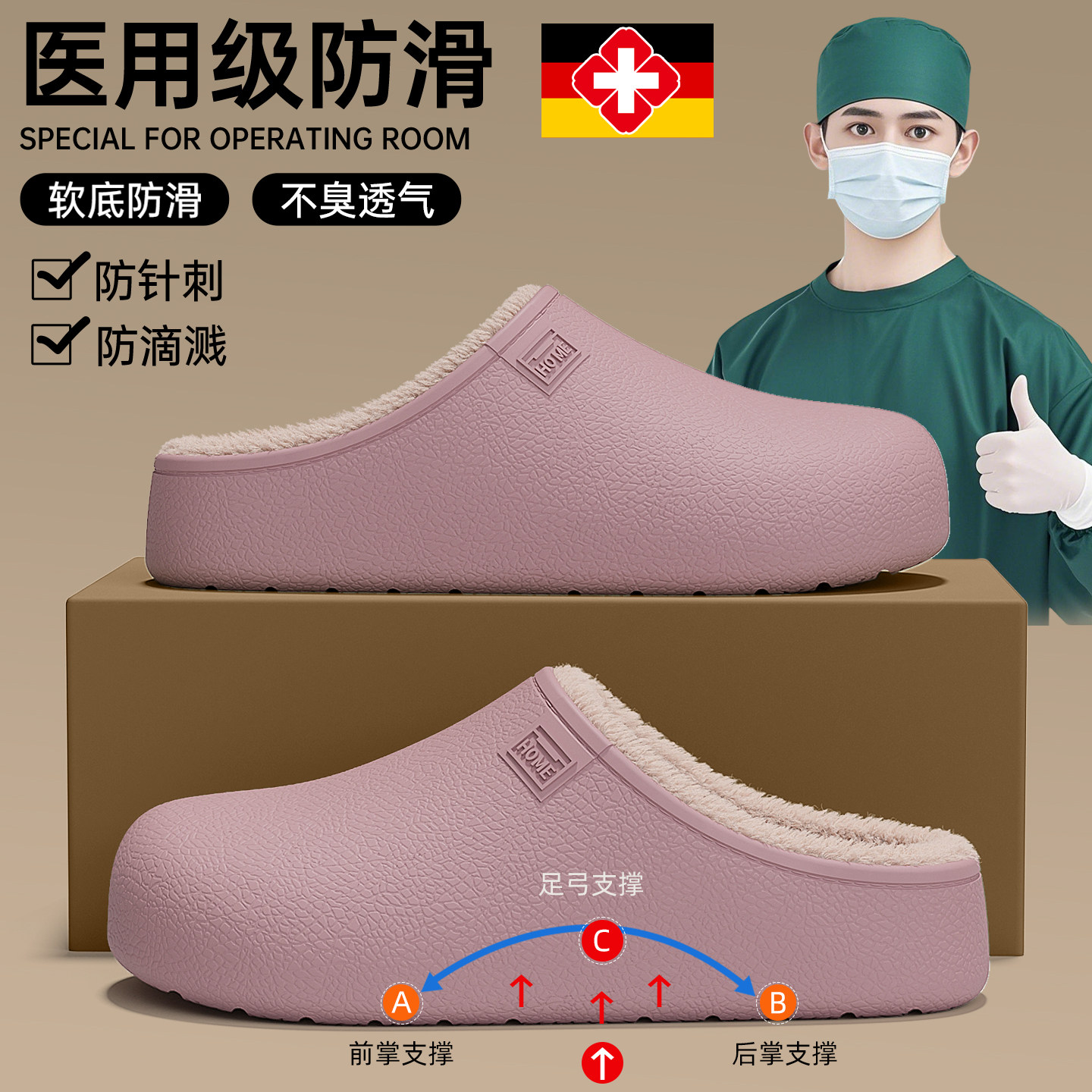 📚 德国手术室医用棉拖鞋女冬季防水保暖2026新款抗菌防臭医护拖鞋男