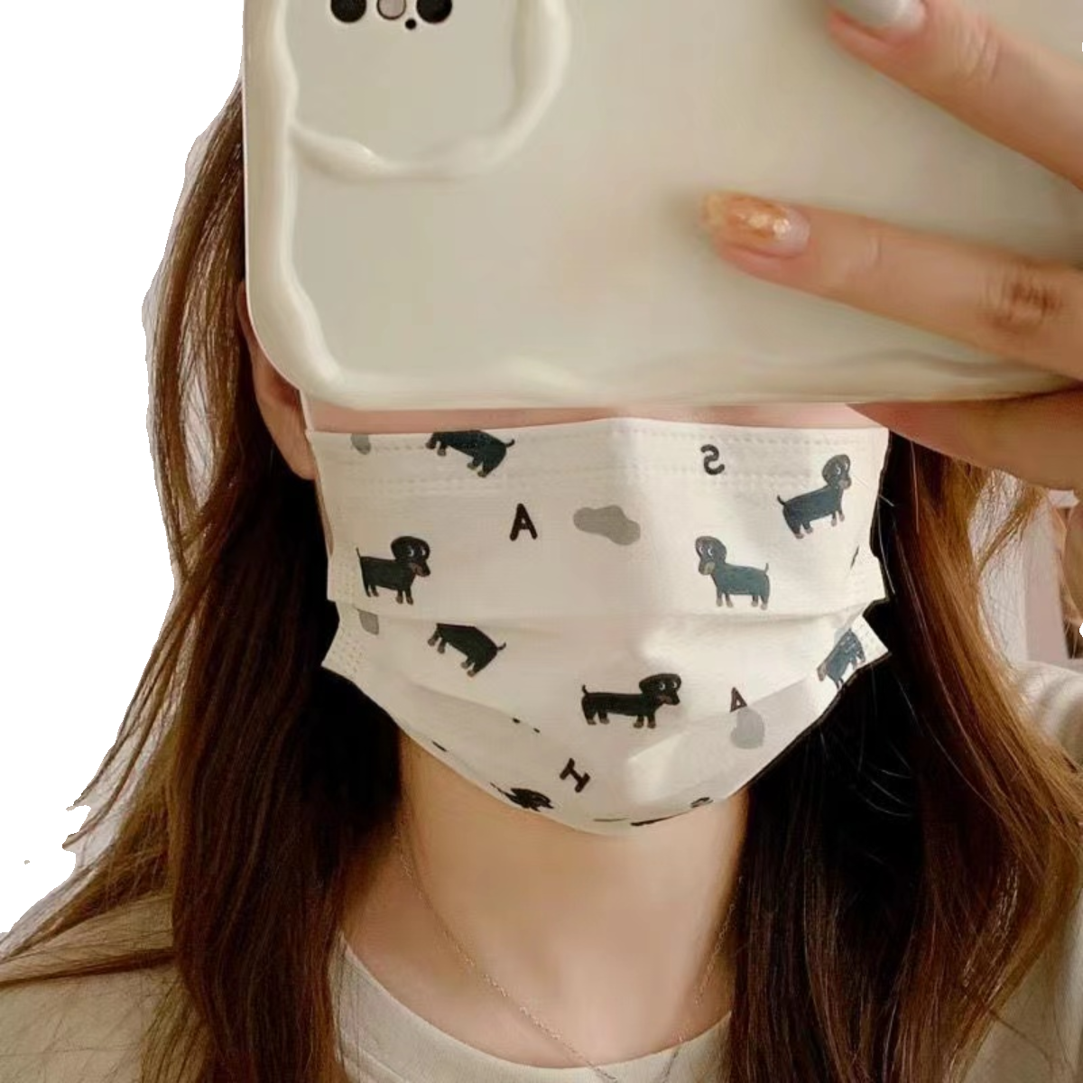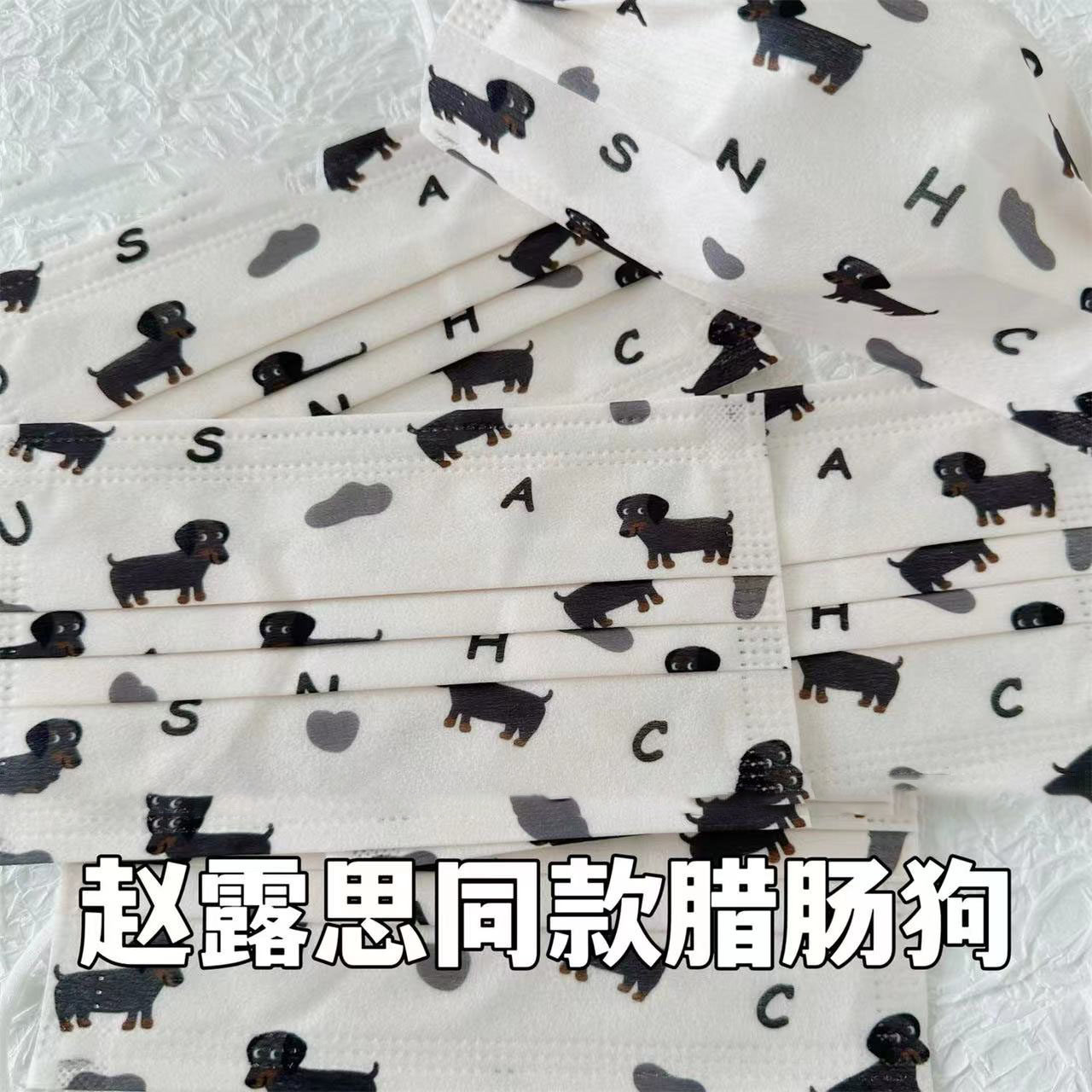 📚 韩国腊肠狗赵露思同款明星卡通可爱ins字母简约印花防护时尚口罩