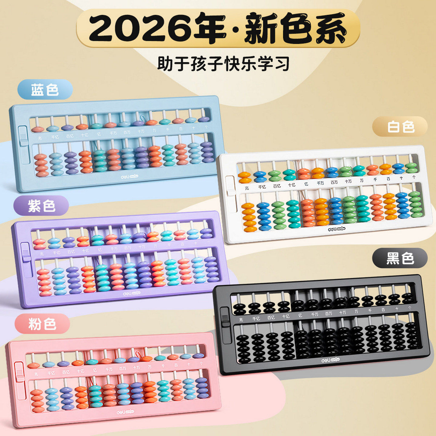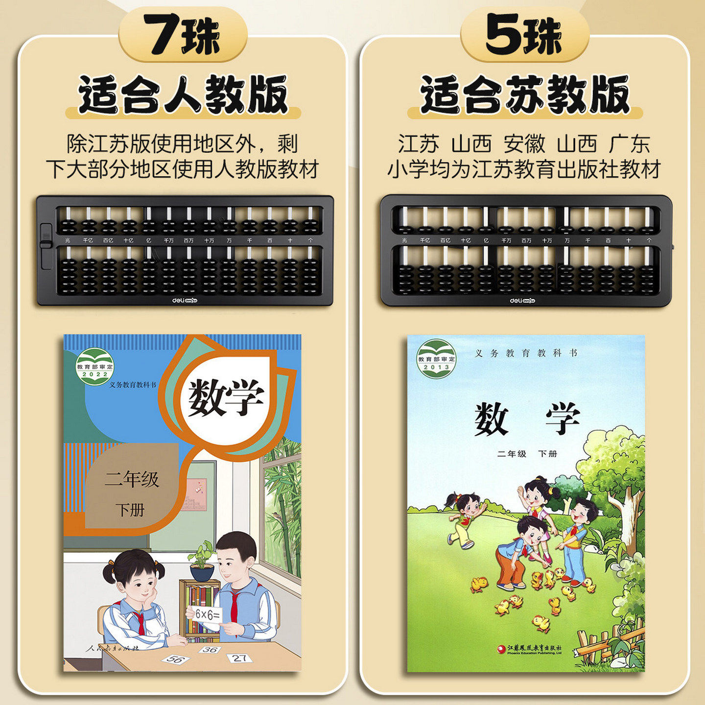 📚 得力算盘二年级下册小学生专用苏教版五珠算盘黑色七珠算盘珠心算小算盘十三行清零算盘四年级学生教具幼儿园