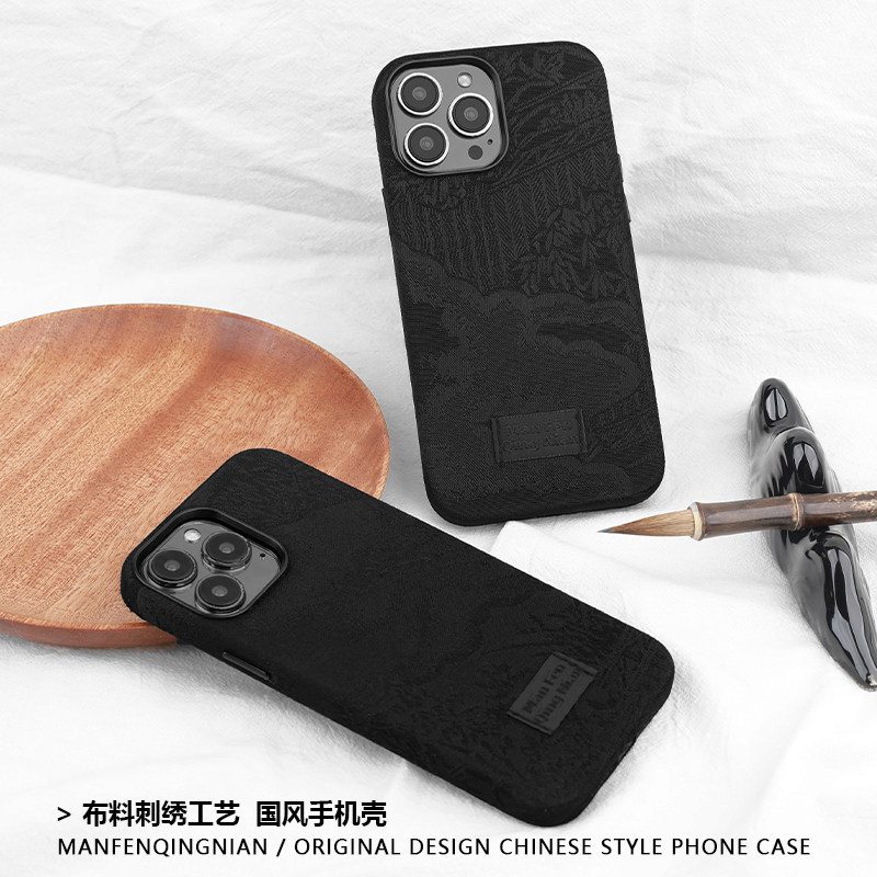 📚 满分青年布料刺绣苹果原创设计图案适用iPhone17promax新中式15个性16手机壳14中国风国潮创意小众复古风