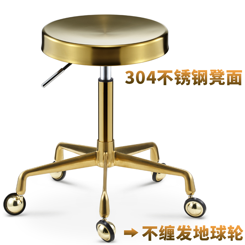 📚 美容美发凳子剪发理发店发廊专用网红不锈钢旋转升降万向滑轮椅子
