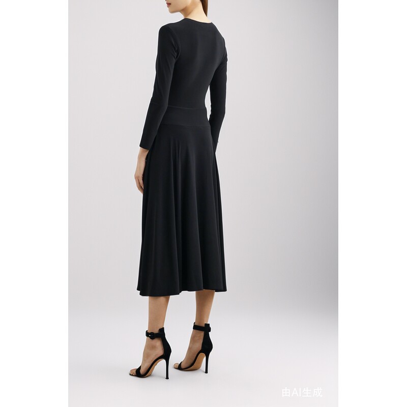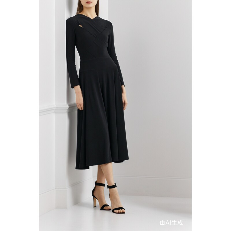 📚 【秒杀】Norma Kamali 秋冬女挖剪弹力小黑裙长袖连衣裙