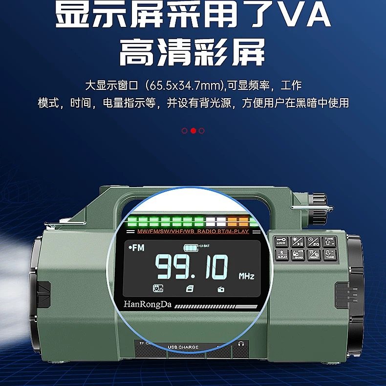 📚 汉荣达908手摇发电防灾应急收音机插卡蓝牙音响露营灯手电筒警报