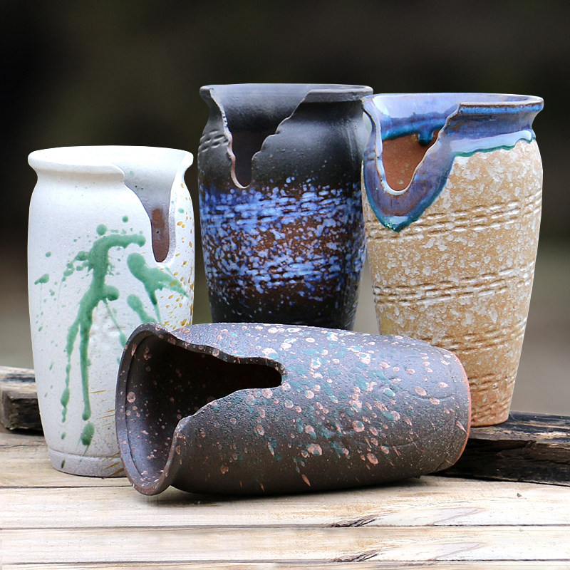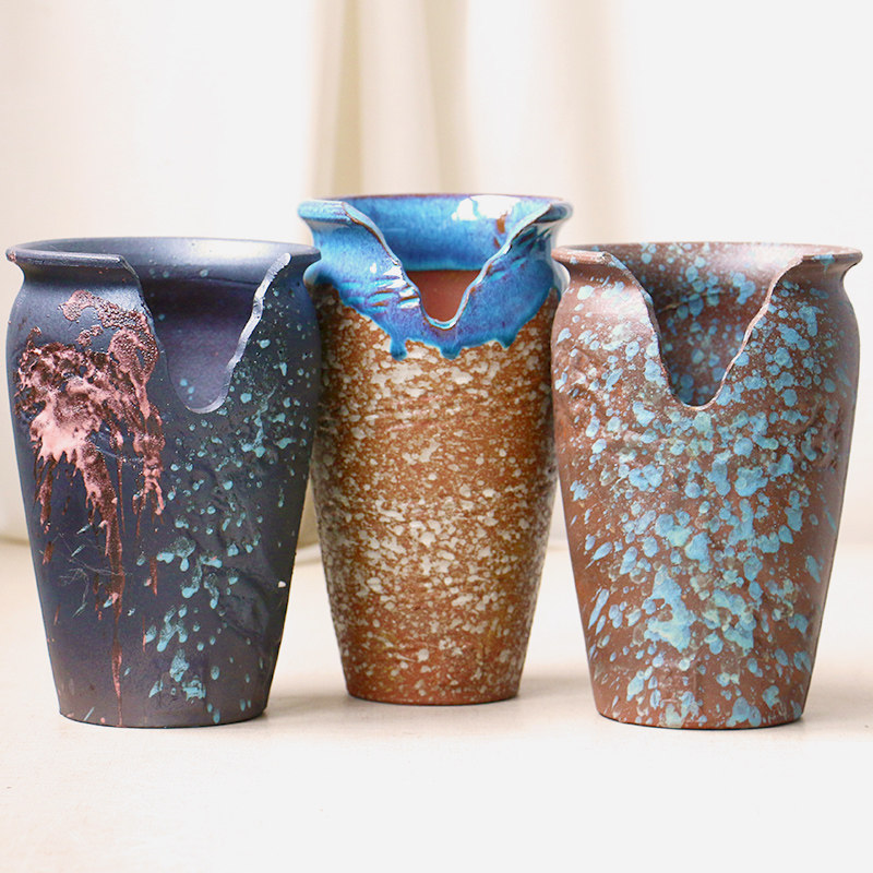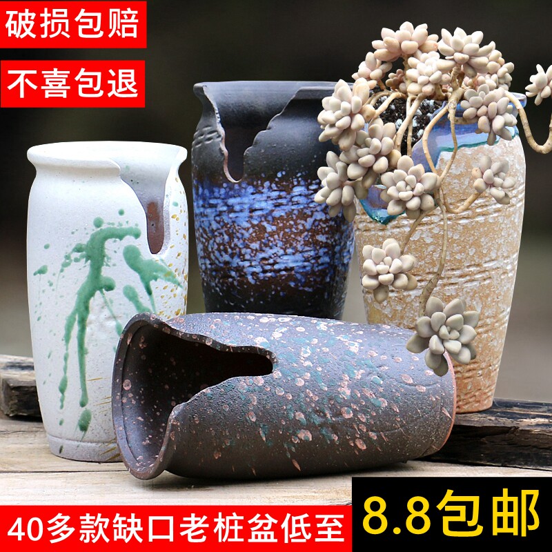 📚 透气中小细高切口缺口悬崖群生多肉植物老桩造型粗陶刻绘陶瓷花盆