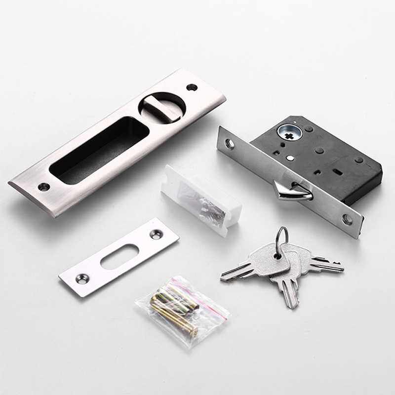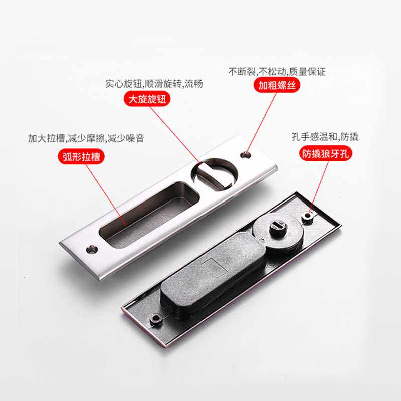 📚 新款直销移门锁钩锁厨房门书房阳台门内嵌式暗装门把手黑色美式滑