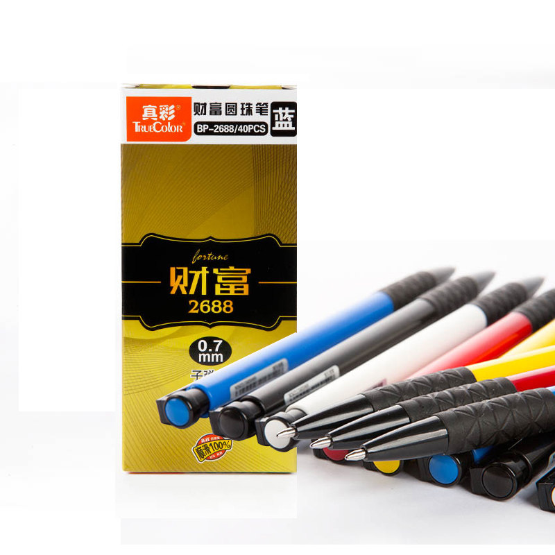 📚 真彩圆珠笔子弹头0.7mm笔芯办公文具学生用品原珠笔蓝色油笔按动圆珠笔办公批发单支装2688