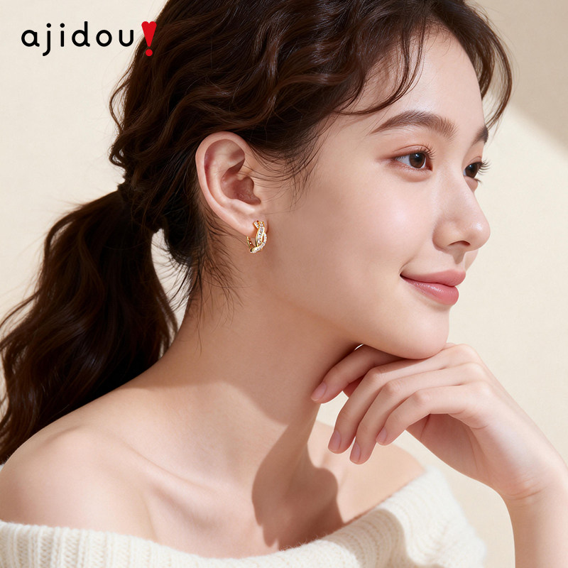 📚 AJIDOU阿吉豆耳环法式轻奢金色女款交织线条高级感显气质耳圈耳饰