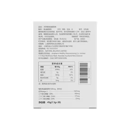 📚 Nutrition Balance天萃恩鱼油提取物95% EPA900mgDHA375mgDPA22mg