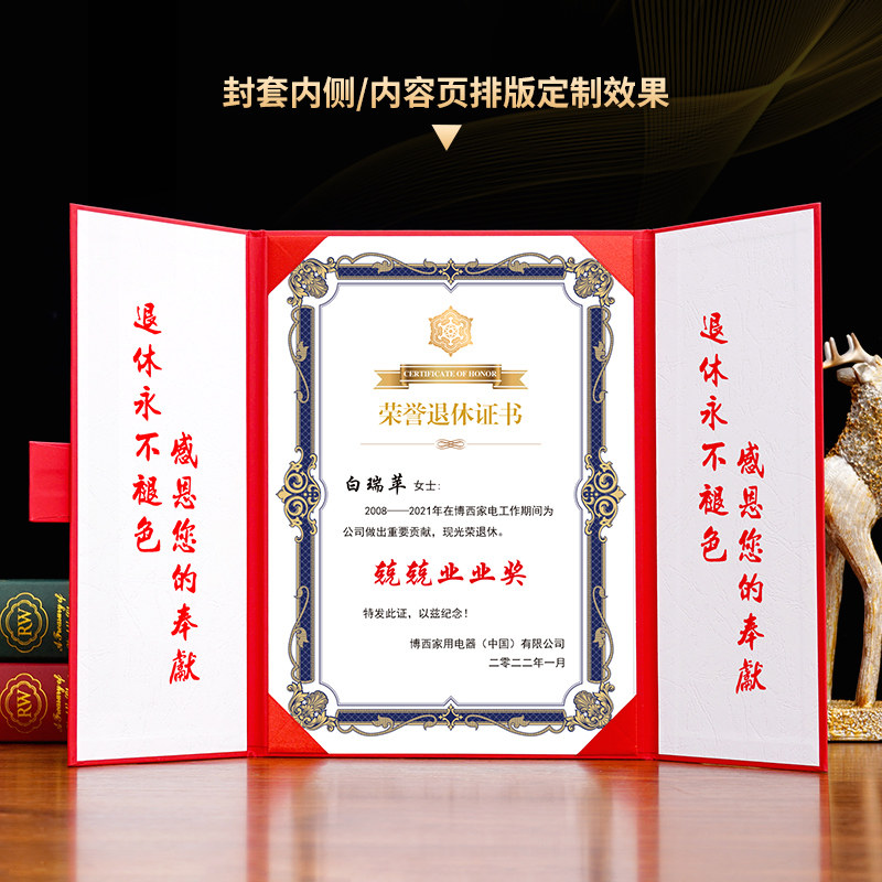 💥A4三折珠光面烫金光荣退休证书纪念品,致敬离岗离业时刻🎓