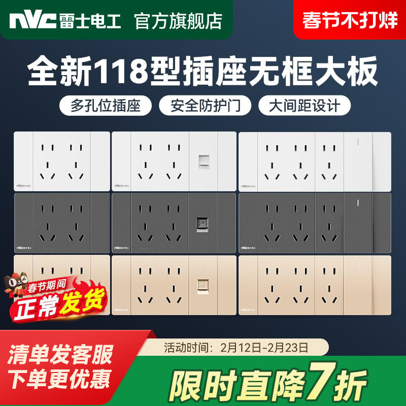 📚 雷士电工118型开关插座面板家用厨房一开五孔十孔多孔开关插座