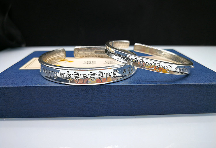 📚 精品原创复古藏文药师9999纯银手镯窄版宽版男女绕线手镯【证书】