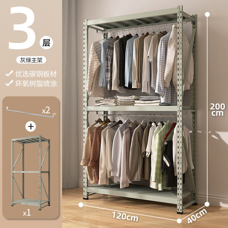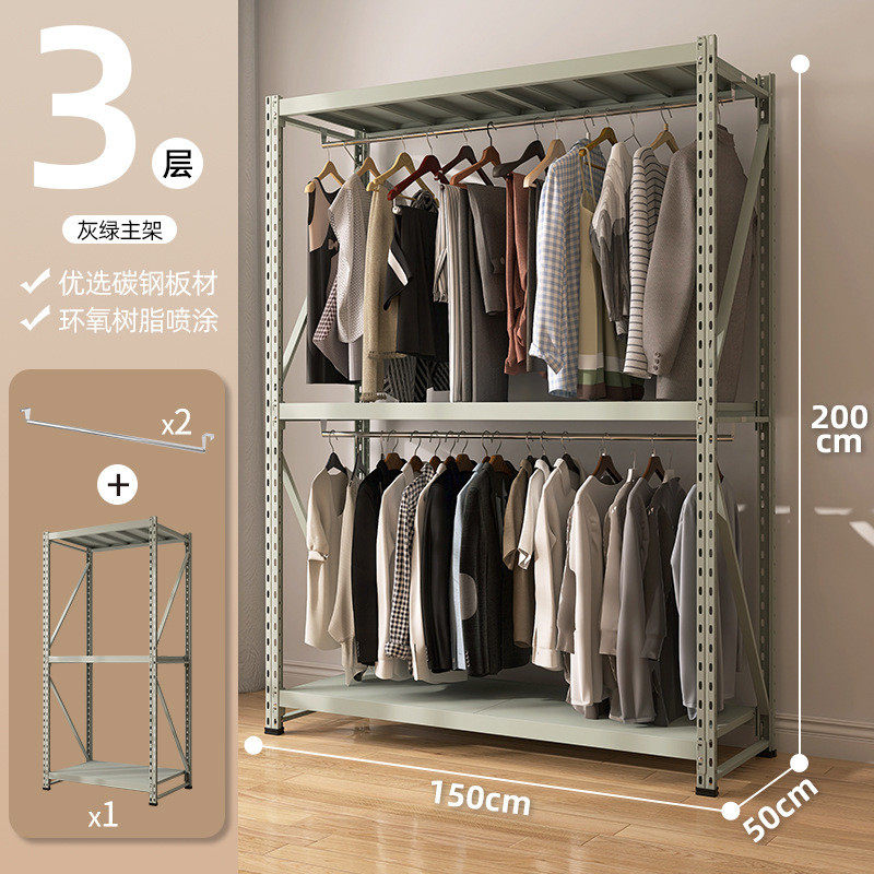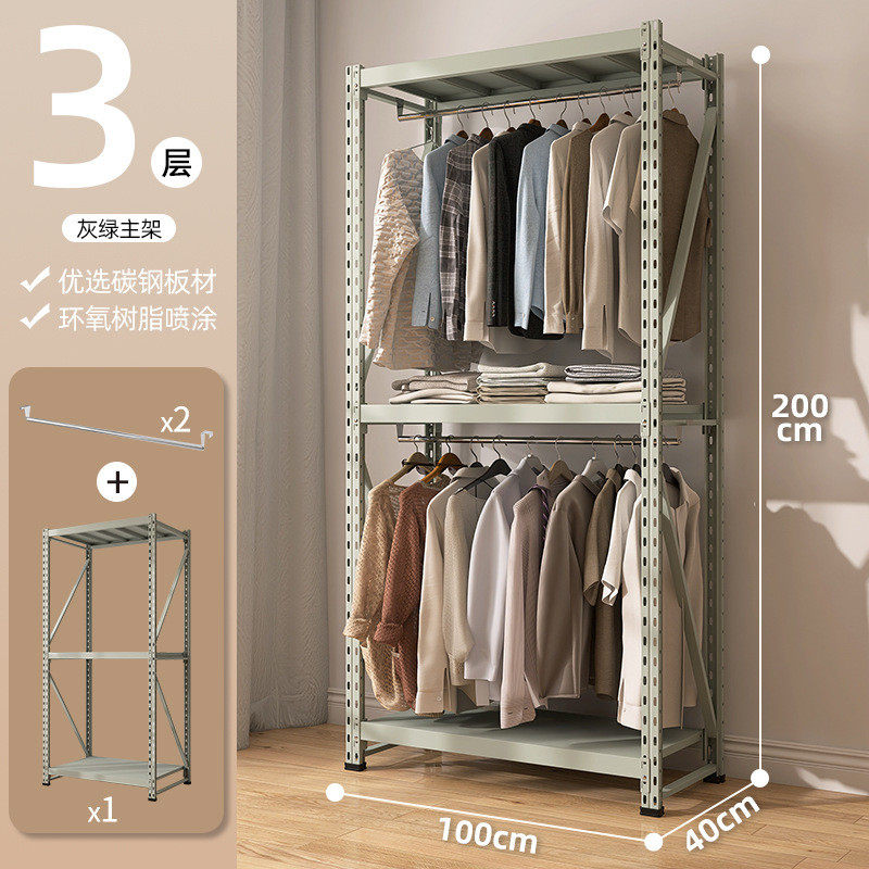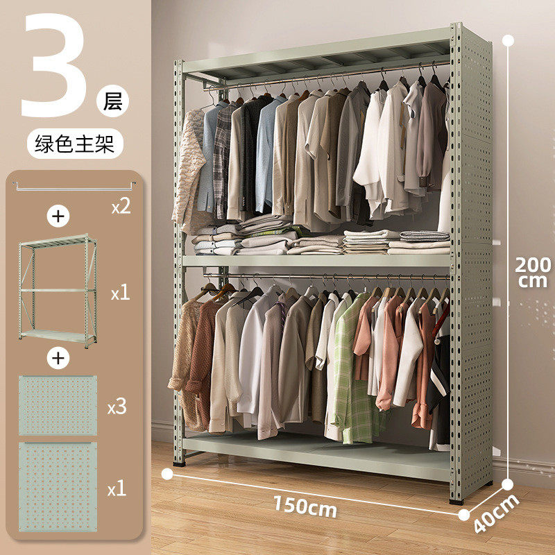 📚 灰绿色衣架卧室租房用落地组合衣帽架出家用钢制洞洞板货架挂衣柜