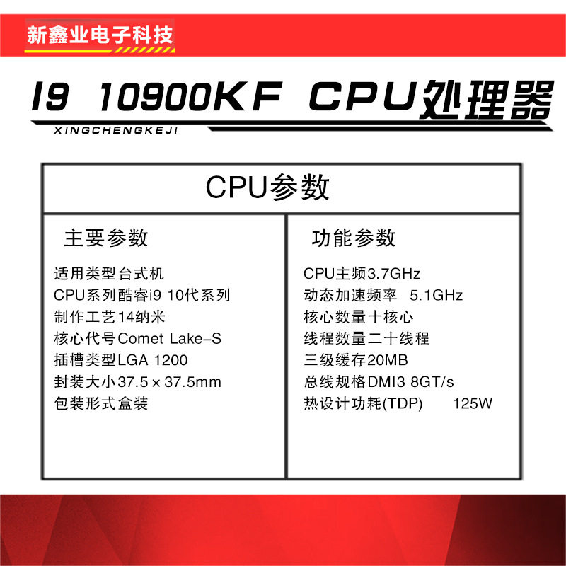 📚 新鑫业电子全新I9 10900KF盒装主频2.9G 十核心二十线程CPU处理器