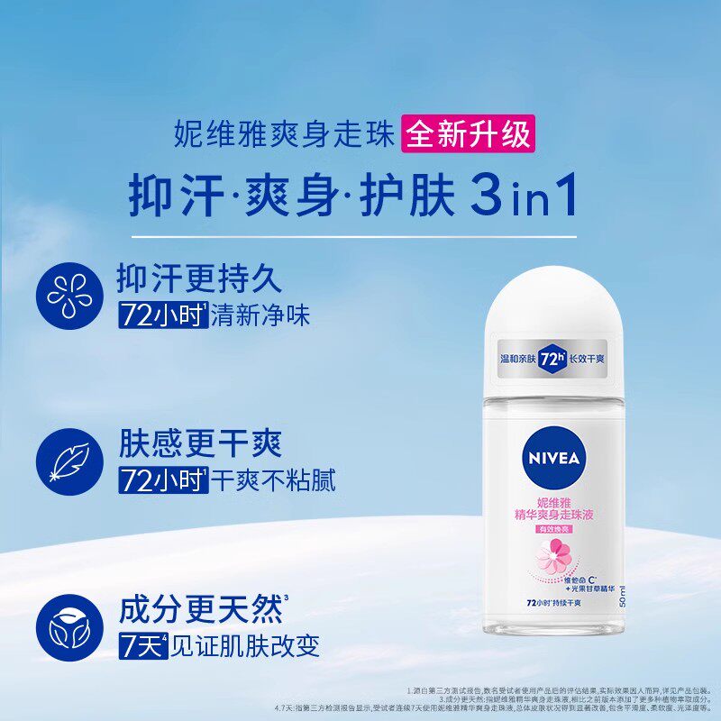 📚 妮维雅走珠液男女止汗露腋下持久保湿香体滚珠抑汗剂喷雾淡香防汗