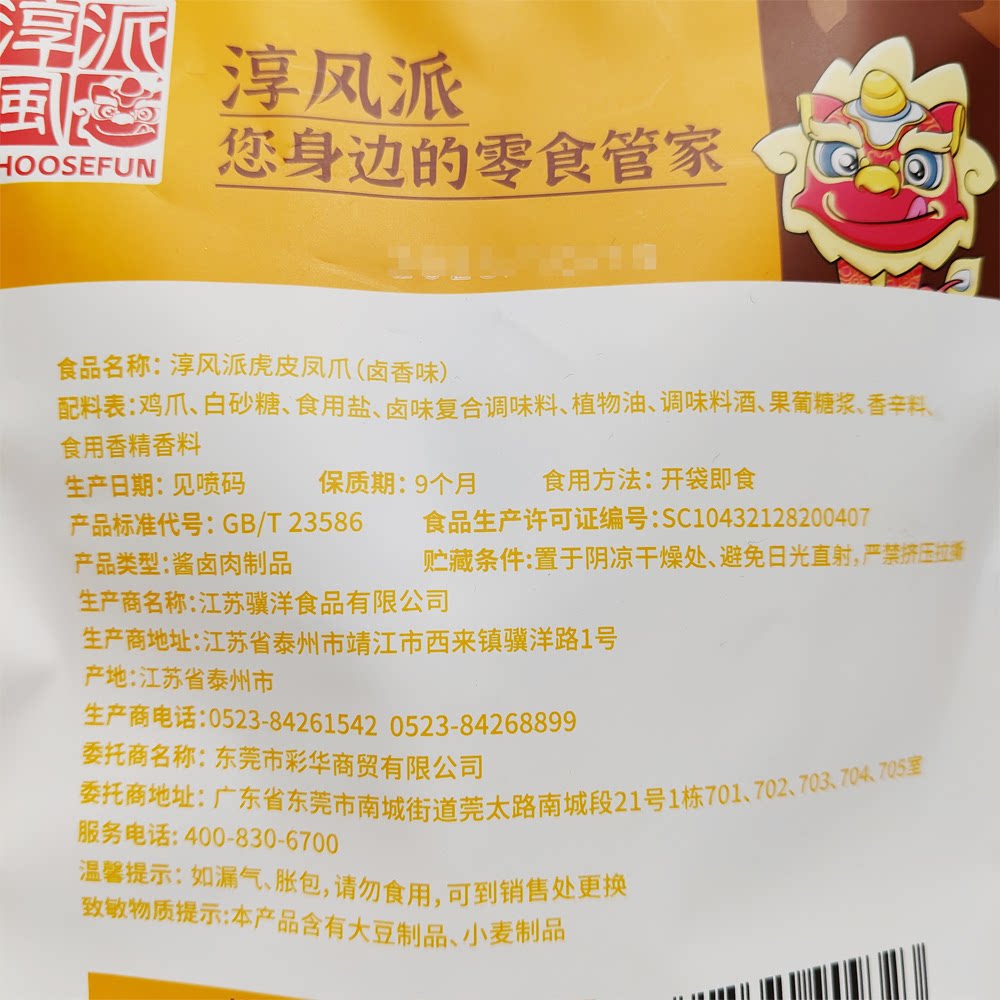 📚 淳风派虎皮凤爪卤香味78g内独立包装5鸡爪熟食休闲追剧小零食