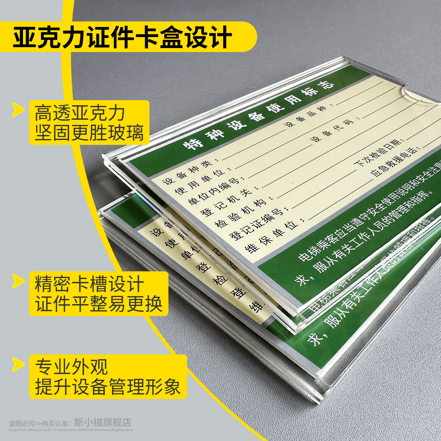 📚 亚克力电梯标识牌设备使用标志年检卡槽合格证框特种设备使用登记证保护套盒子电梯维护维保公示牌标志盒定制