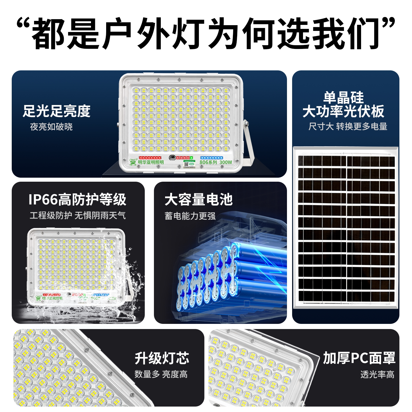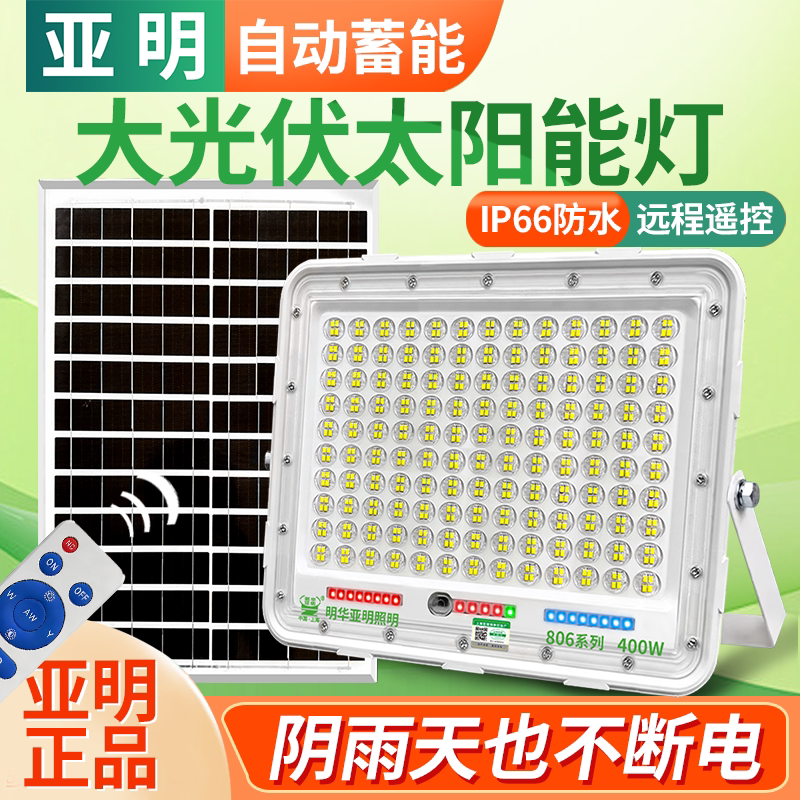📚 亚明led太阳能投光灯户外防水 100W路灯农村别墅庭院家用照明道路