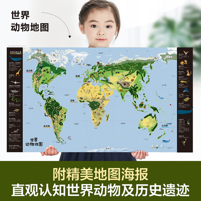 📚 看地图认世界动物 大开本地图 乐乐趣绘本6-12岁翻翻书拉鲁斯儿童人文百科儿童书籍6-8-12岁小学生一二年级课外书看地图游世界名胜