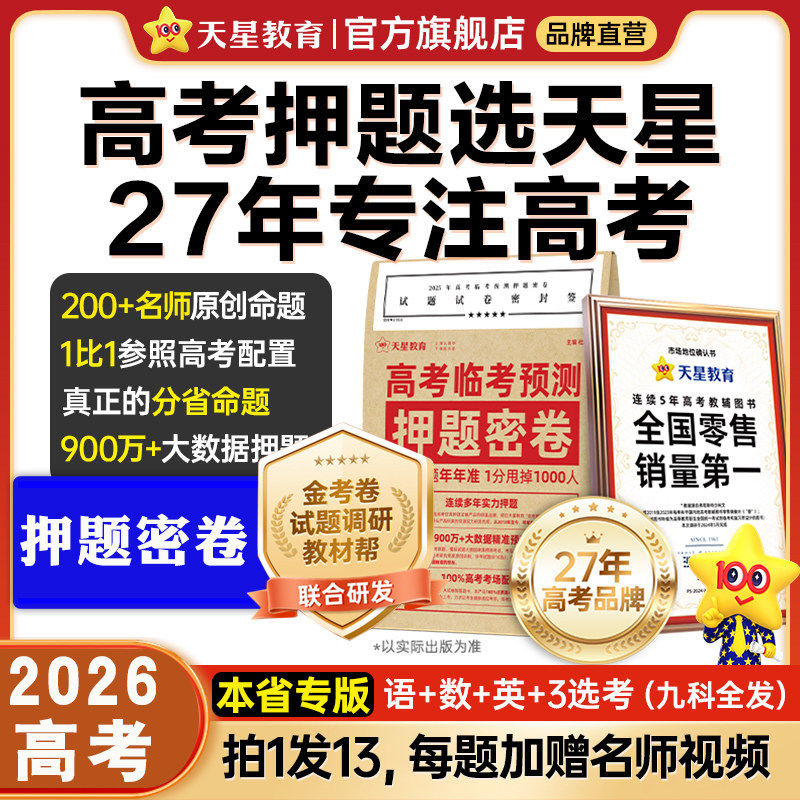 📚 2026天星教育押题密卷高考临考预测卷全套金考卷数学物理化学英语文高三九省联考模拟卷真题卷全国卷文理科综合三轮复习资料试卷书
