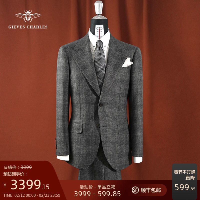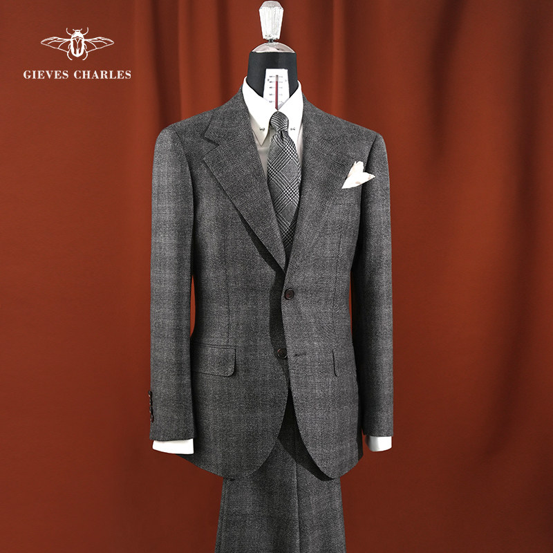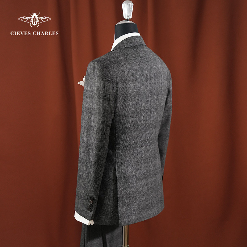 📚 【1881意大利面料】灰色暗格纹羊毛高定手工商务休闲西服套装男