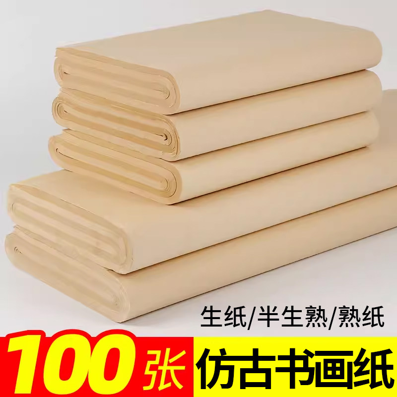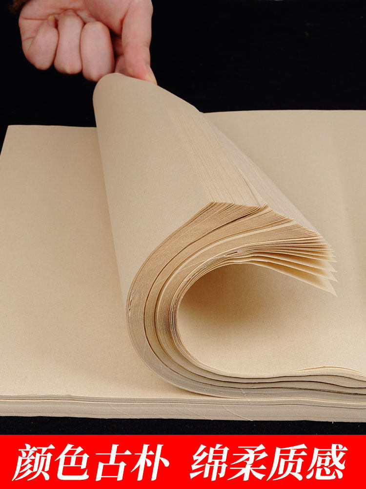 📚 大山皮纸仿古书画纸书法专用纸半生熟作品纸初学者复古书法练习纸四尺六尺对开生纸国画熟纸加厚批发毛笔字纸