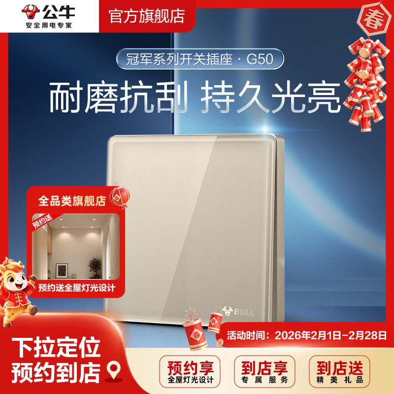 📚 【门店同款】公牛插座旗舰店墙壁开关插座G50墙开金色开一开双控