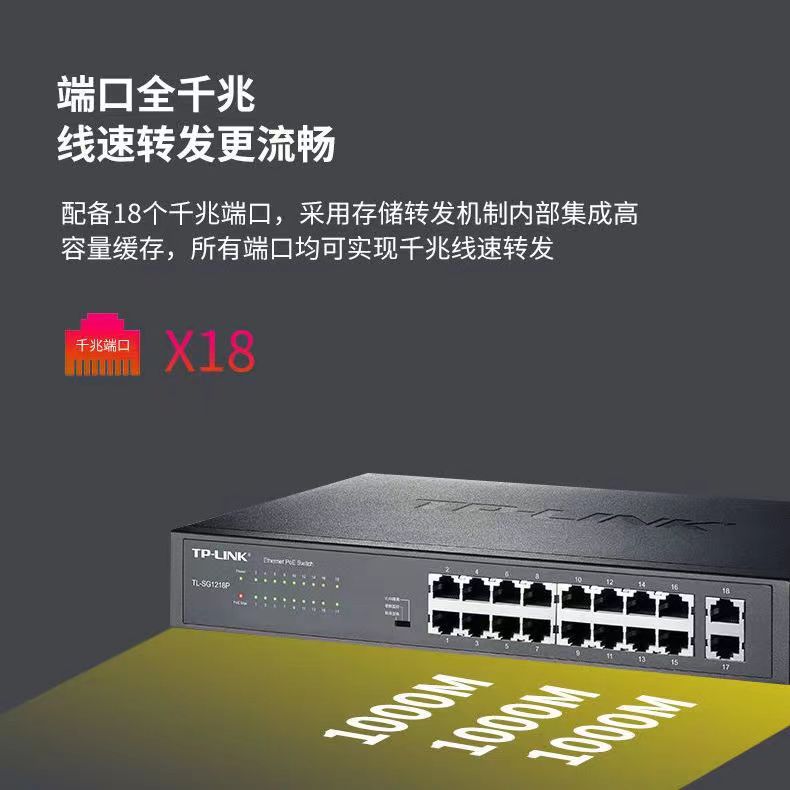 📚 普联TP-LINK16口SG2218P交换机poe千兆18口企业48v供电监控SG1218