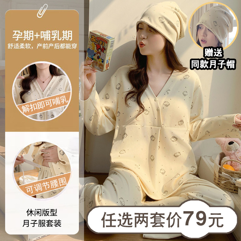 📚 带胸垫纯棉春夏月子服产前产后产妇夏季薄款孕妇哺乳衣喂奶家居服