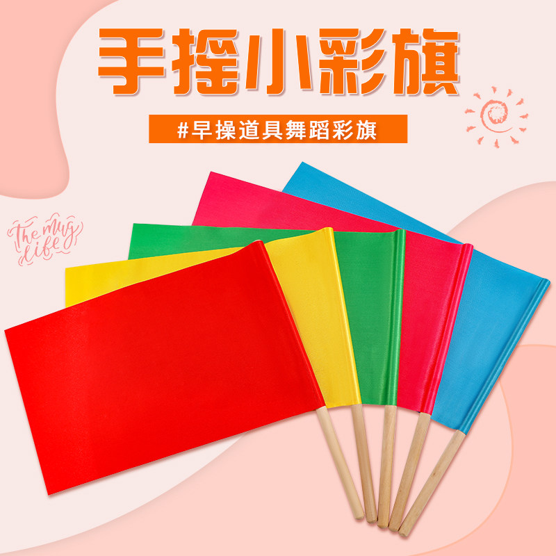 📚 儿童幼儿园课间操做早操道具舞蹈红彩旗运动会活动手摇木柄小旗子
