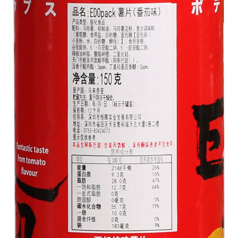 📚 马来西亚EDOPACK巨浪大切薯片多口味罐装零食组合膨化零食150g/罐