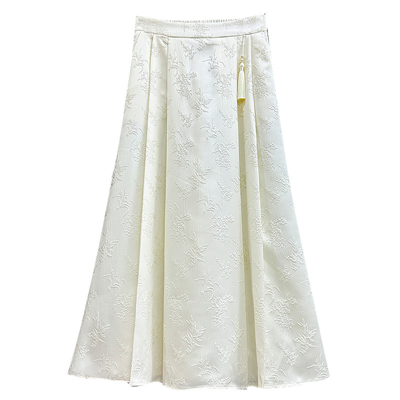 📚 新中式国风提花流苏挂坠半身裙女秋冬新款小个子百褶裙子长裙半裙