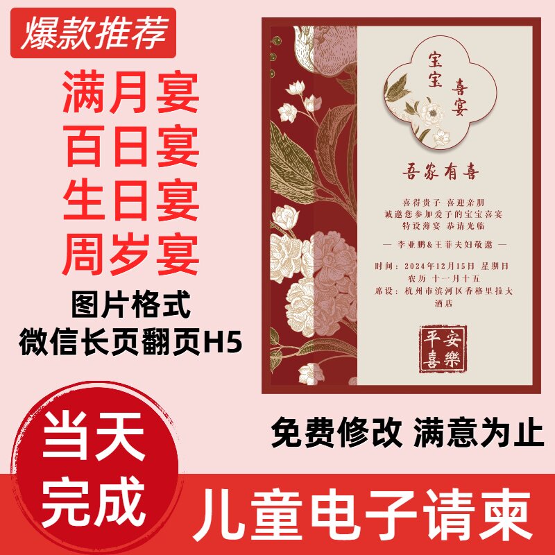 📚 宝宝电子请柬邀请函图片生日满月微信请帖百日宴喜帖儿童H5定制作