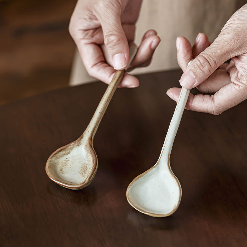 📚 陶瓷勺子吉田成器日式粗陶家用汤勺手工咖啡杯粗陶勺子复古餐具
