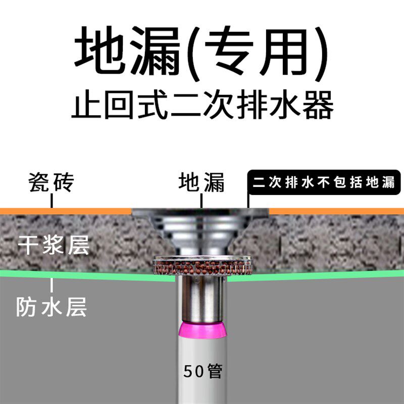 📚 盖帝虎二次排水器地漏专用预埋暗漏卫生间50管同层积水排除器沉箱
