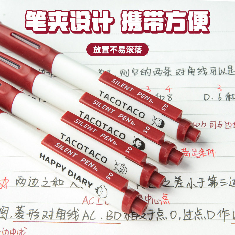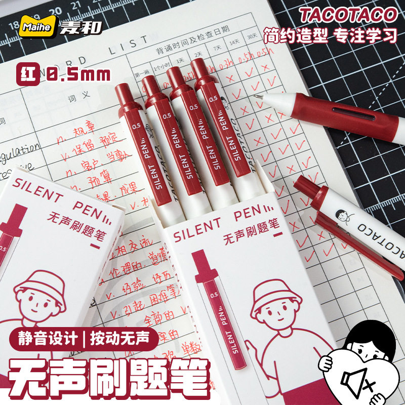 📚 老师批改作业专用红笔静音笔学生红色中性笔TacoTaco按动笔0.5水笔速干碳素圆珠笔教师水性红笔无声签字笔芯