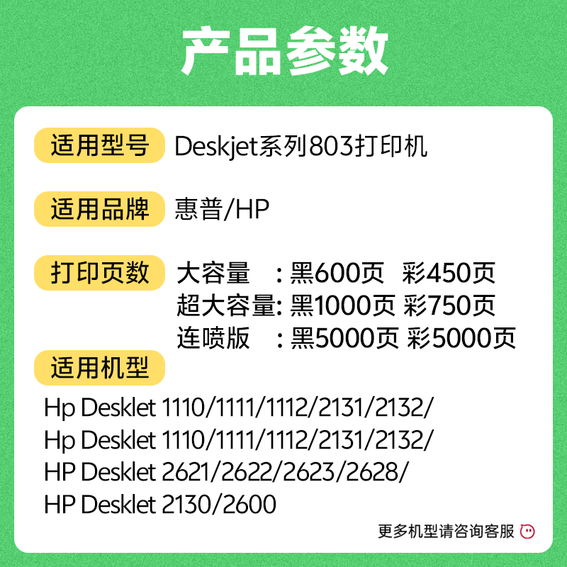 📚 真格美适用 HP惠普803墨盒彩色deskjet 2132打印机1112 2131 2628 2622 2130 2623 2621打印机连供墨盒可加墨