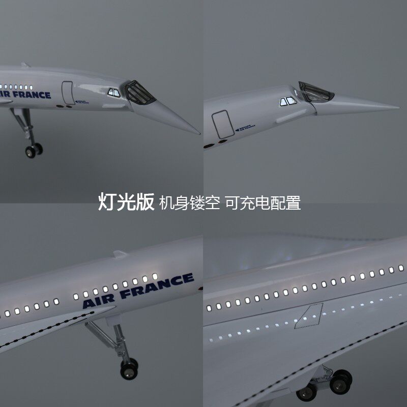 📚 50厘米拼装飞机带灯法航协和式客机法国仿真飞机模型航模Concorde