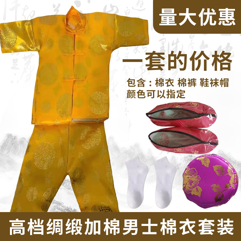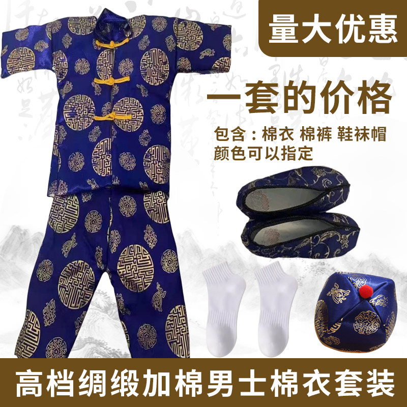 📚 十月一寒衣节男士加厚棉衣套装绸缎面料鞋帽清明节冥府祭祀上坟用