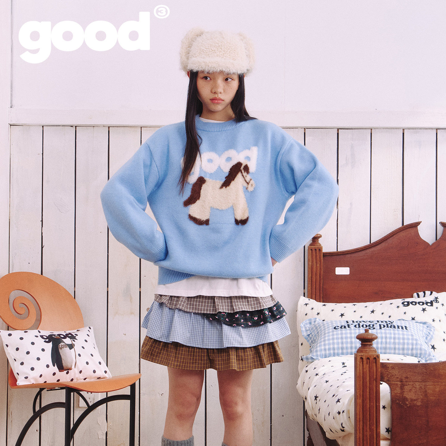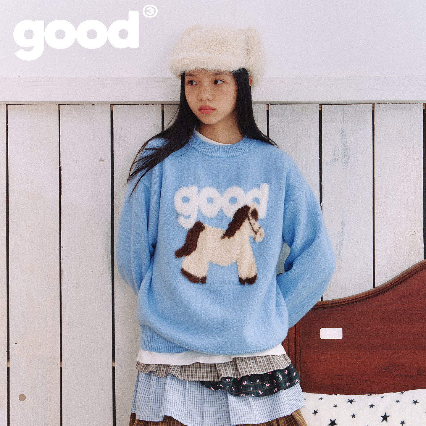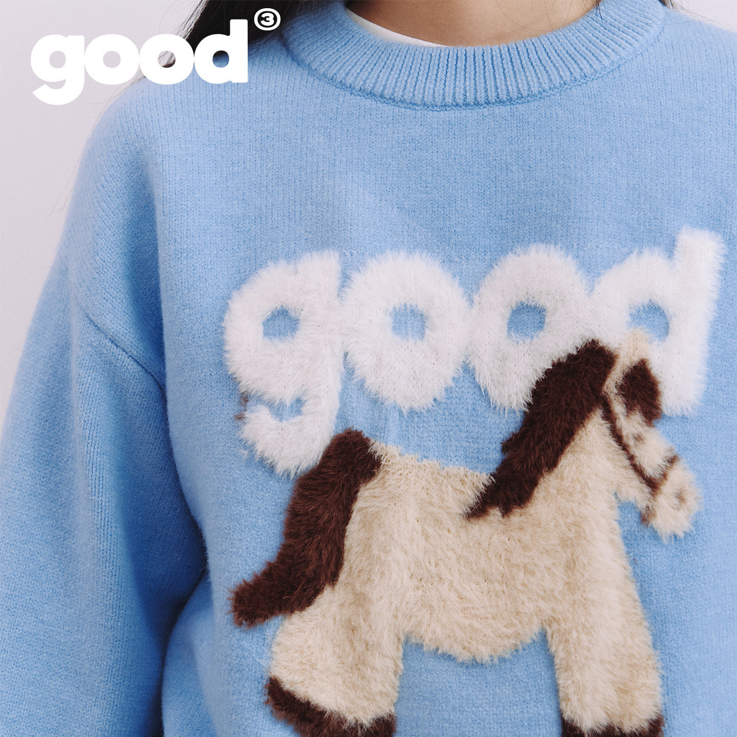 📚 美好商店MeihaoStore「蓬蓬马」白棕拼接小马good仿貂毛套头毛衣