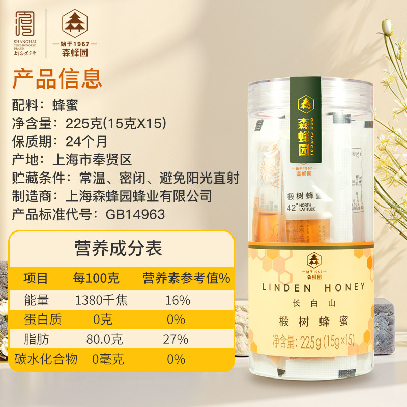 📚 森蜂园长白山椴树蜂蜜便携袋装条蜜 办公冲饮泡水蜂蜜15gx15*2瓶