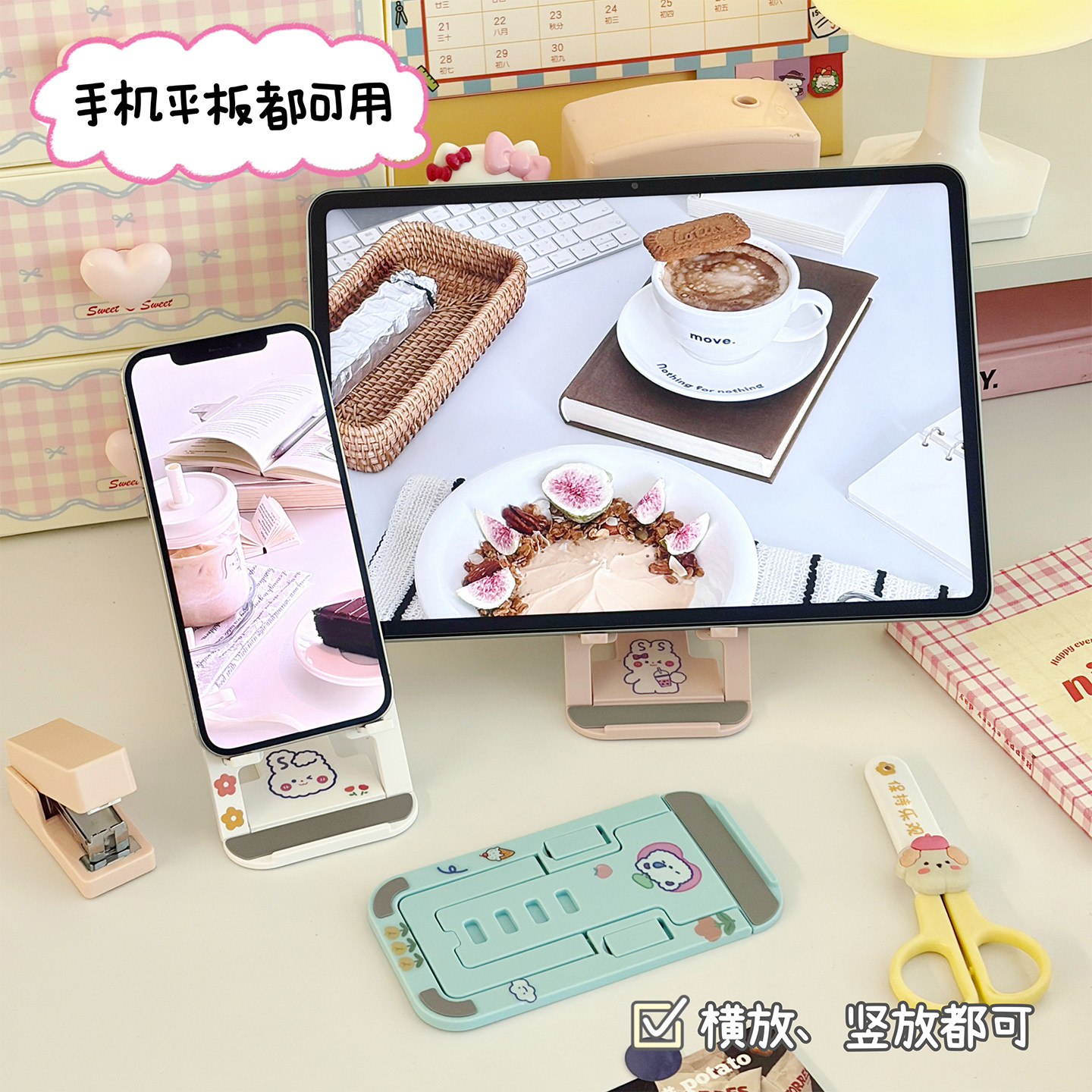 📚 简约可爱桌面手机支架可折叠便携随手看电视追剧学生宿舍平板两用