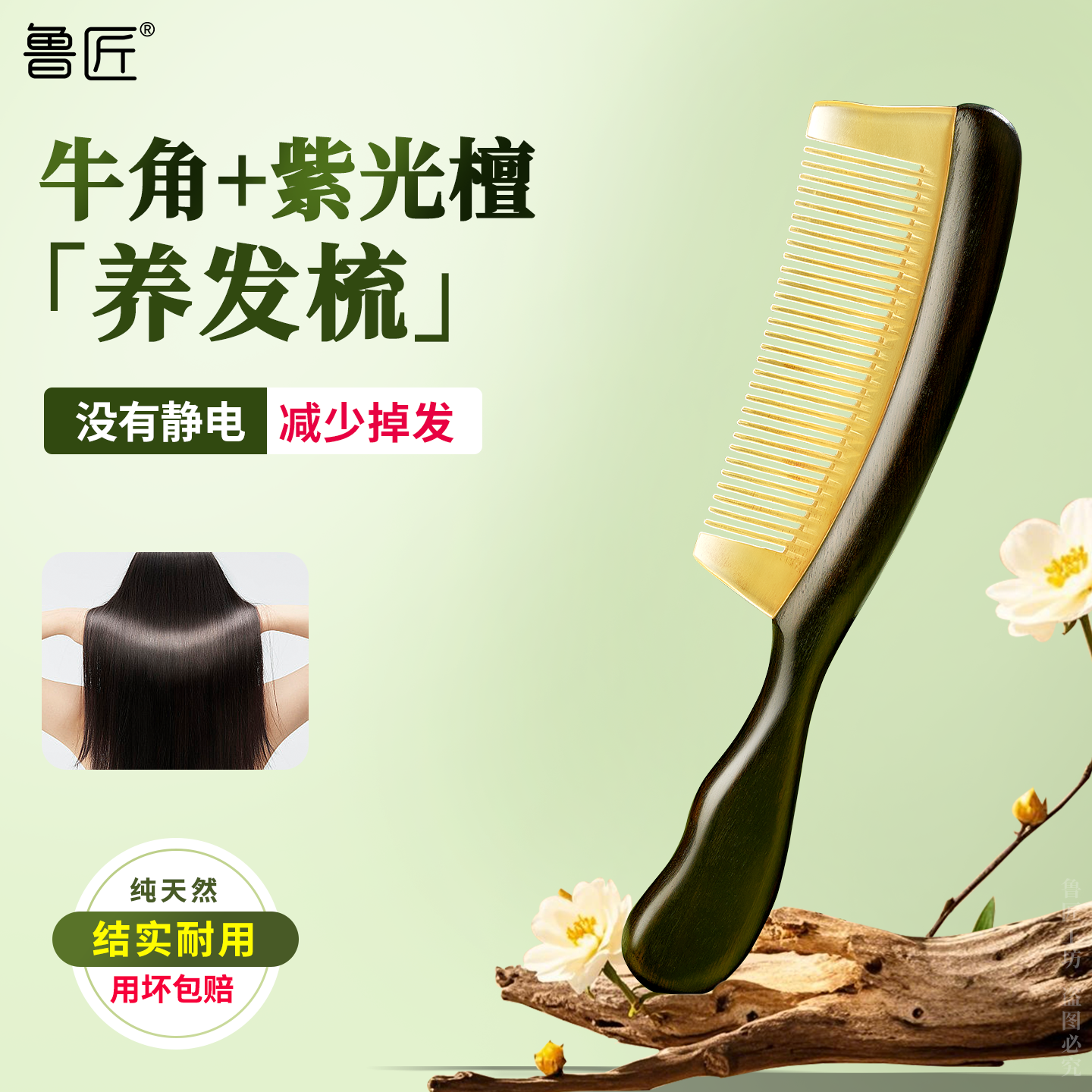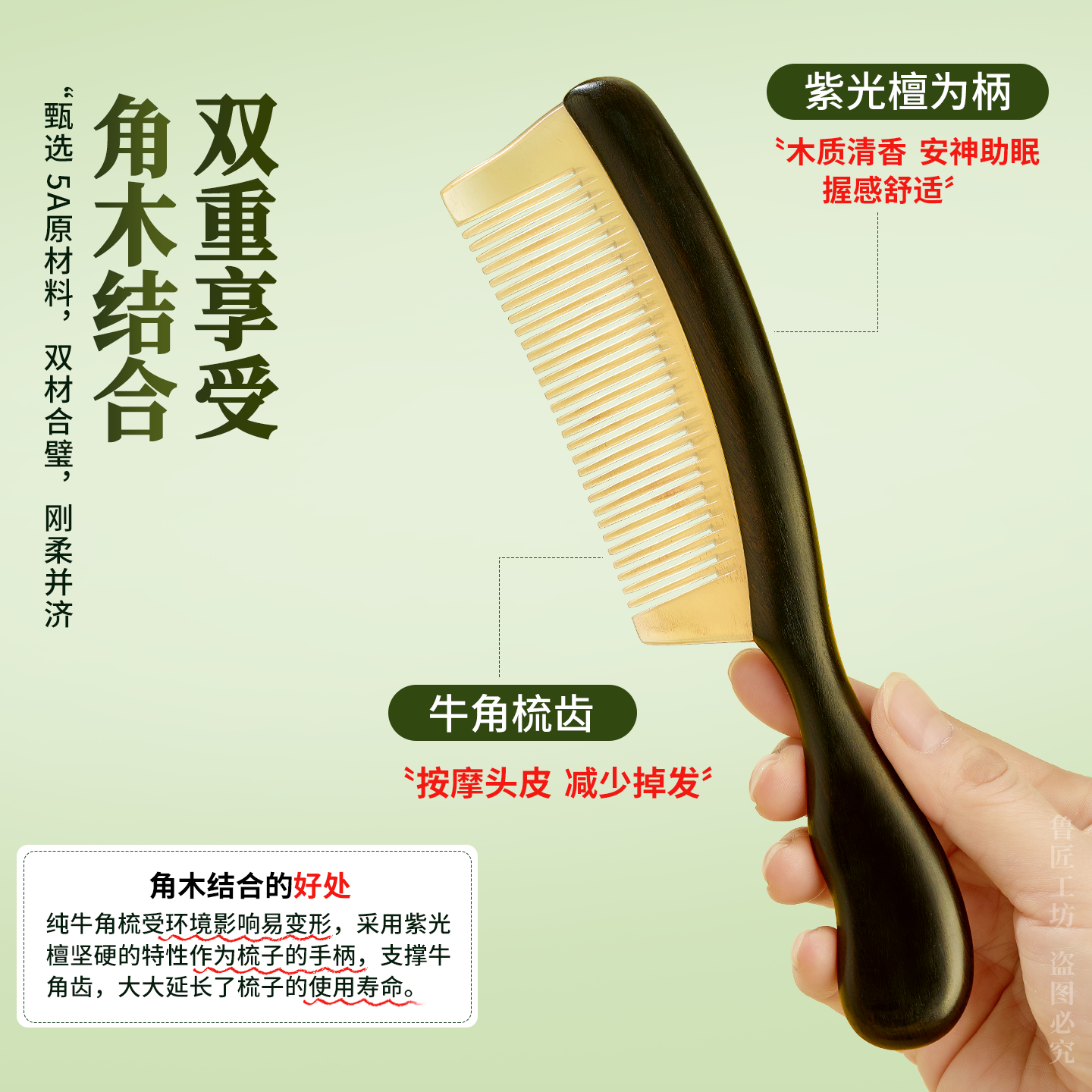 📚 天然檀木牛角梳子防静电脱发女士专用长梳头梳卷发按摩经络养发梳