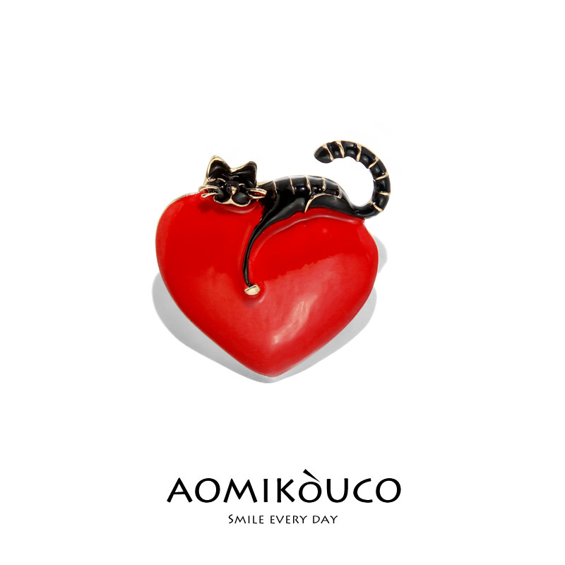 📚 时尚百搭爱心猫咪胸针红色桃心黑猫别针胸花开衫毛衣外套精致配饰