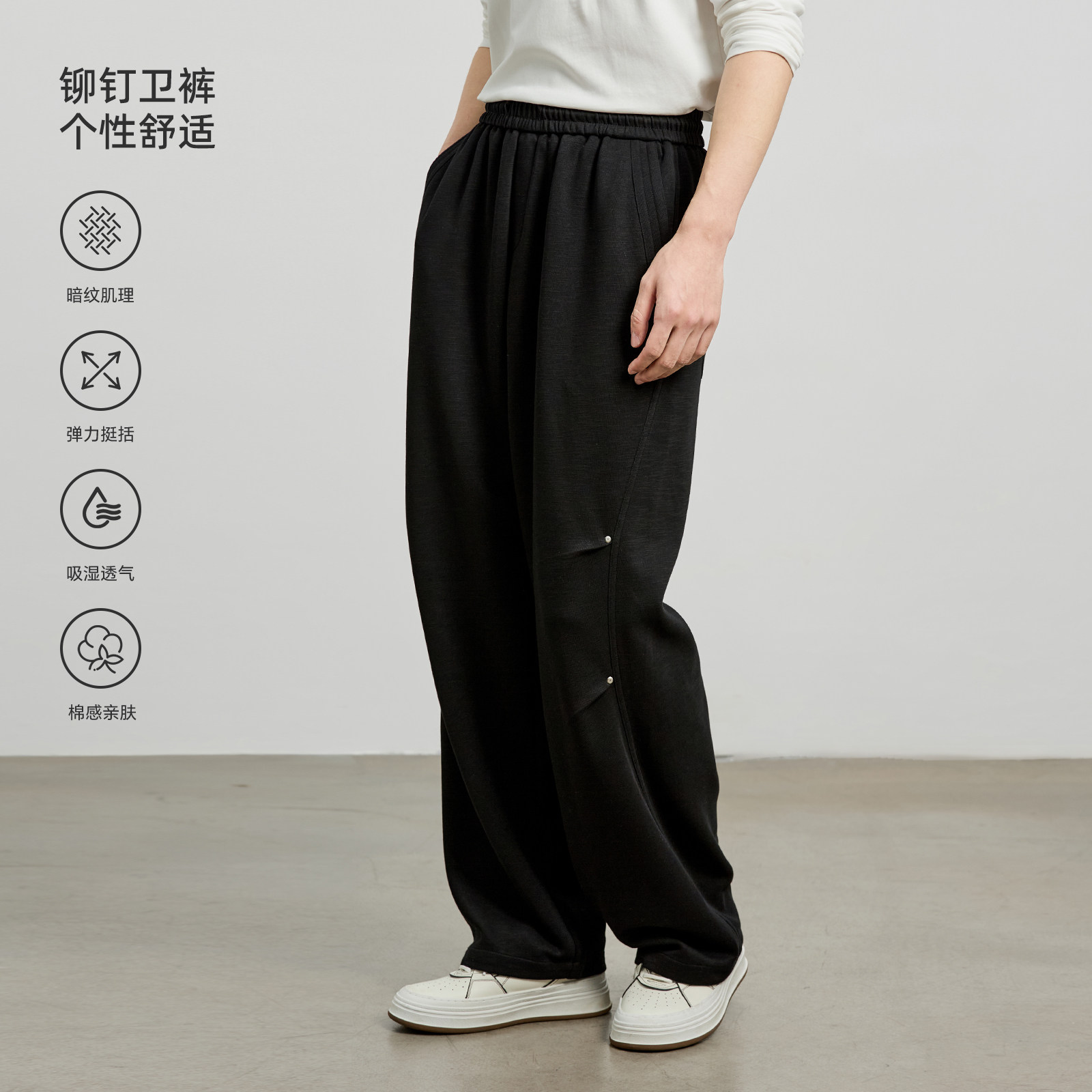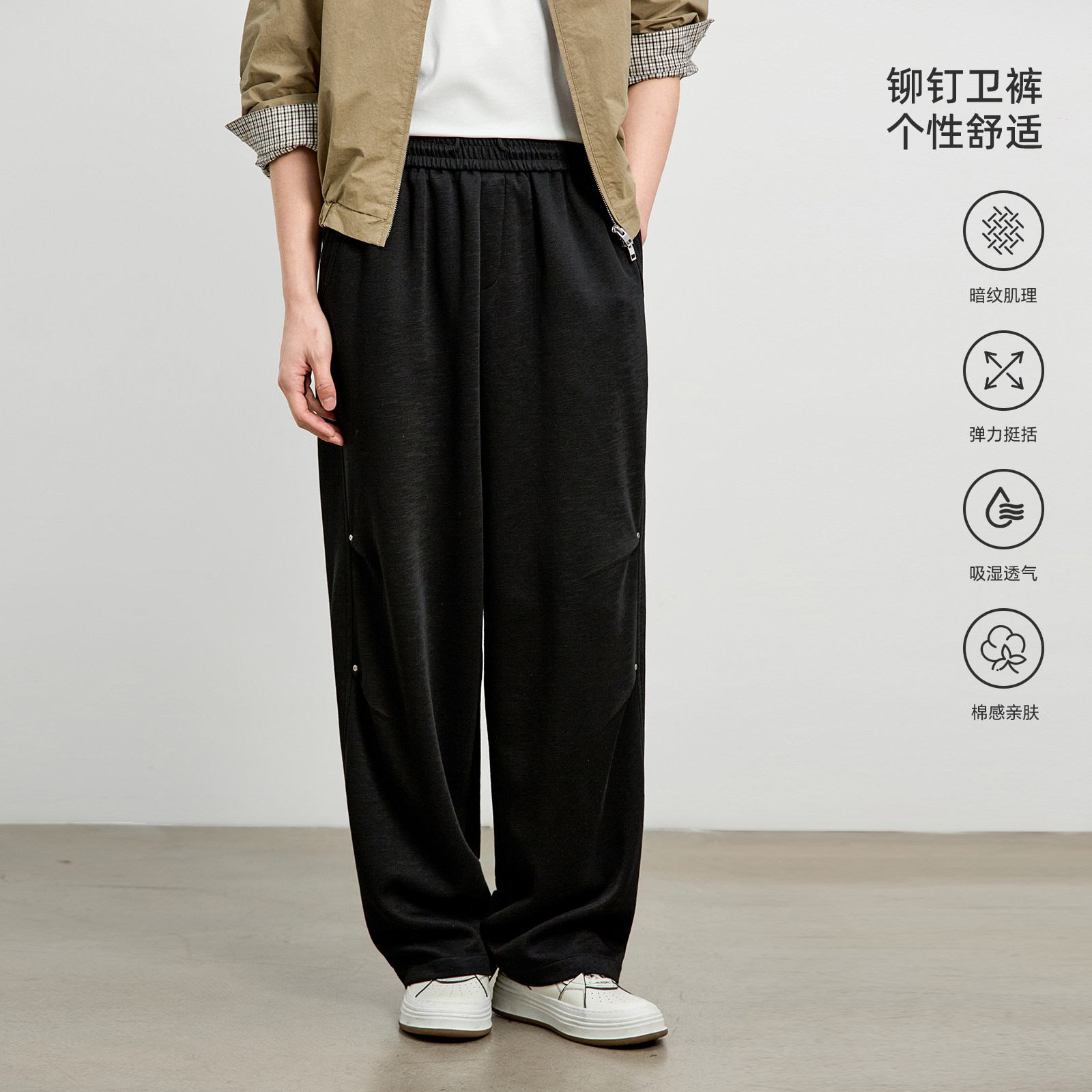 📚 海上公路双褶铆钉卫裤男士春秋季松弛感阔腿直筒通勤风百搭休闲裤