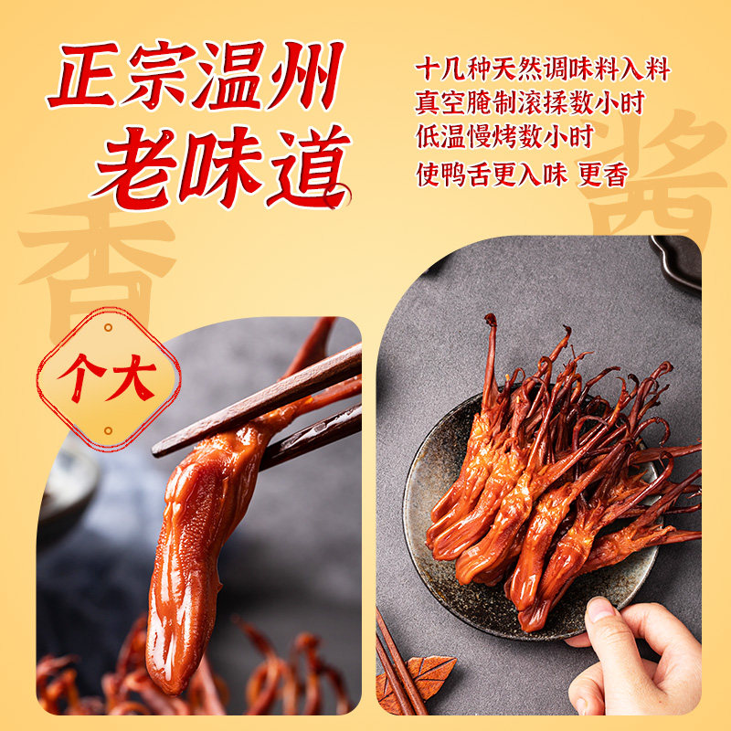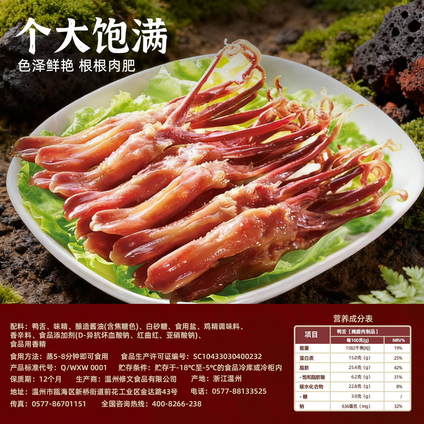 📚 修文食品生鸭舌温州特产酱鸭舌腊鸭舌生鲜半成品需要蒸称重500g