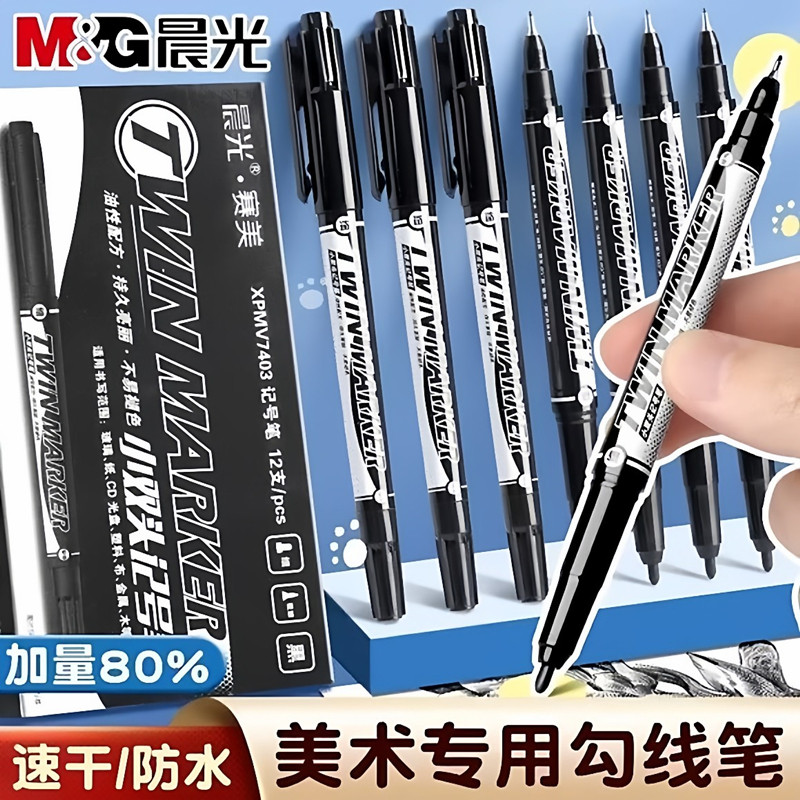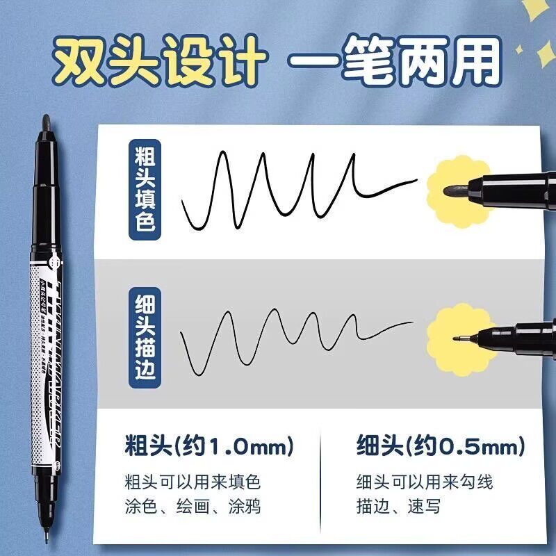 📚 晨光小双头记号笔油性防水不掉色画划线描边标记笔粗细两头勾线笔