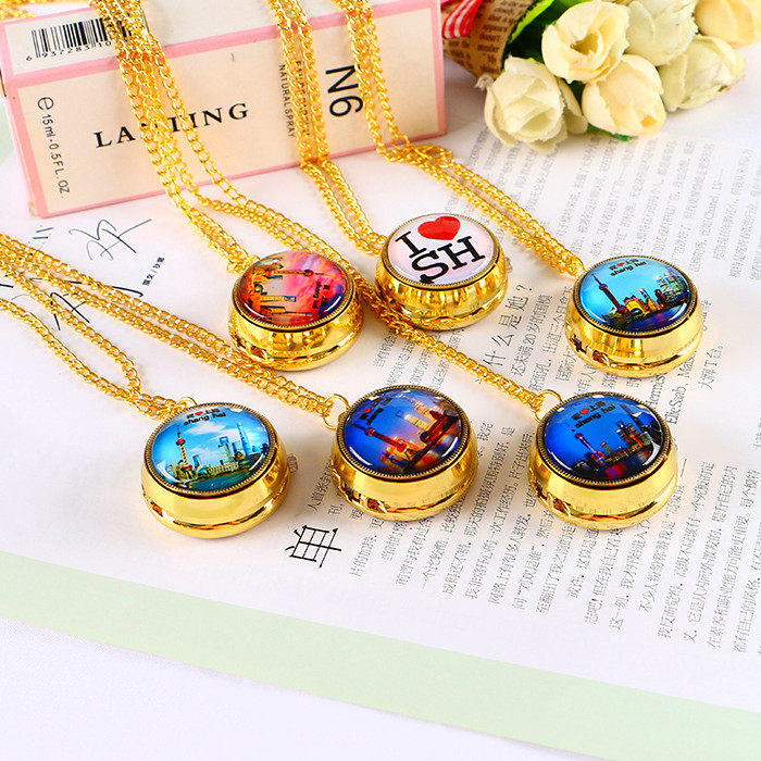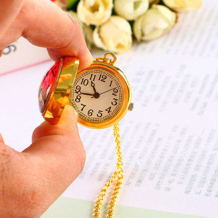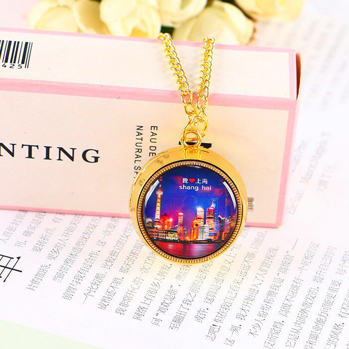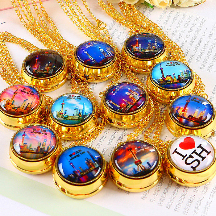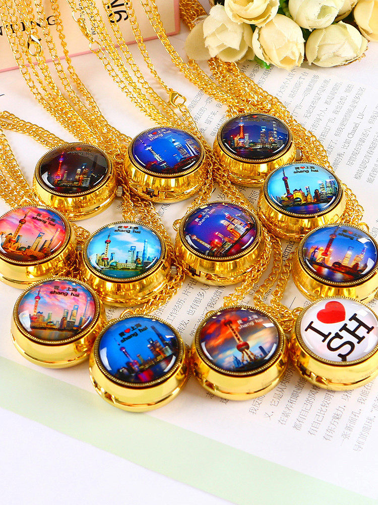 📚 上海东方明珠旅游景区怀表男女学生儿童表复古翻盖项链表旋转挂表