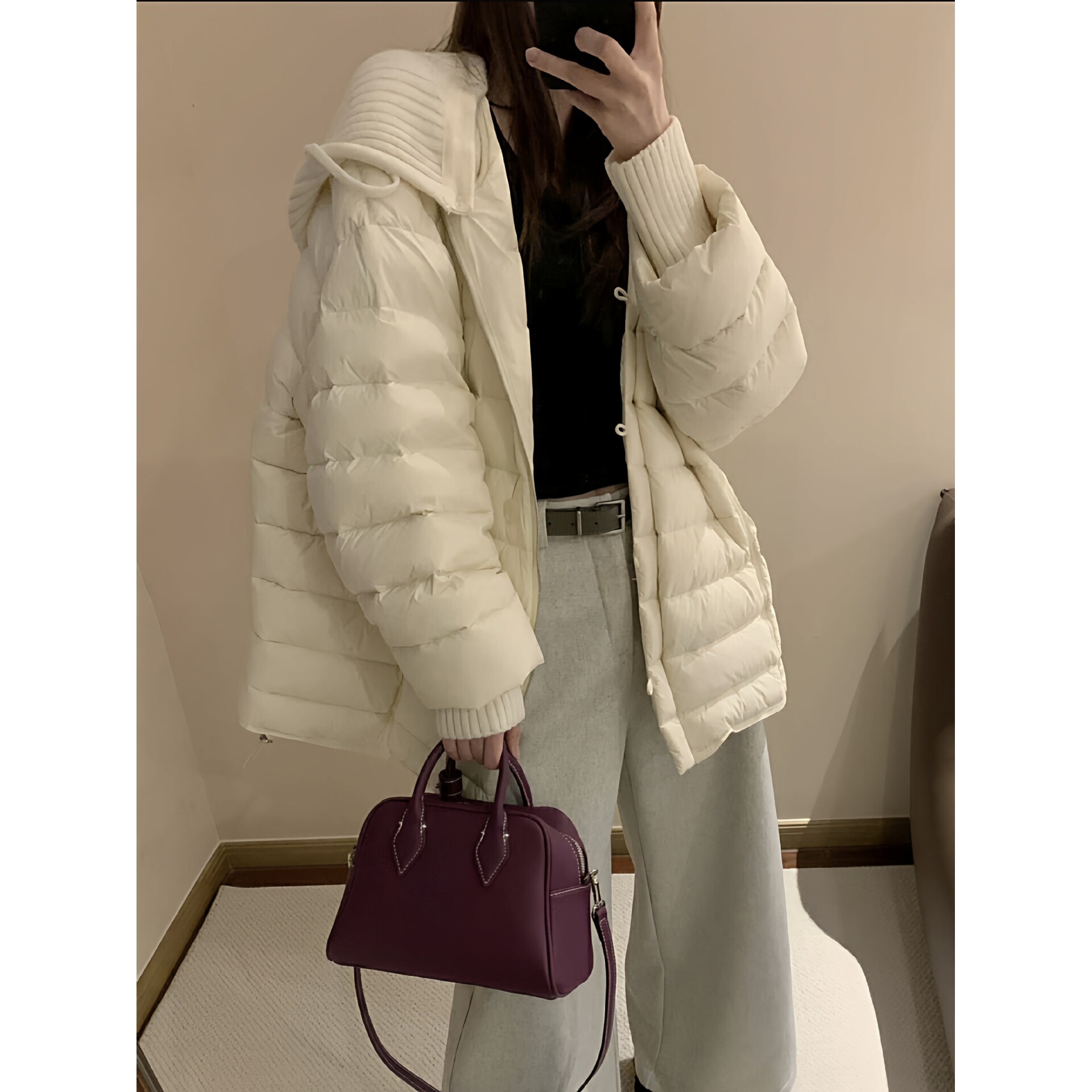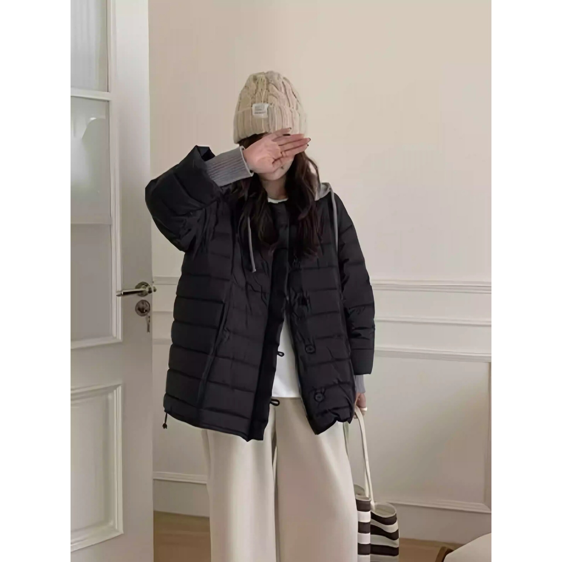 📚 亮世秋羽绒服轻薄排骨女中长款2025秋冬新款泡芙针织连帽可拆卸韩